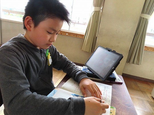 自分が書いた文字とお手本を見比べ、漢字と平仮名とのバランスなど、自分で考えて修正をしていました。