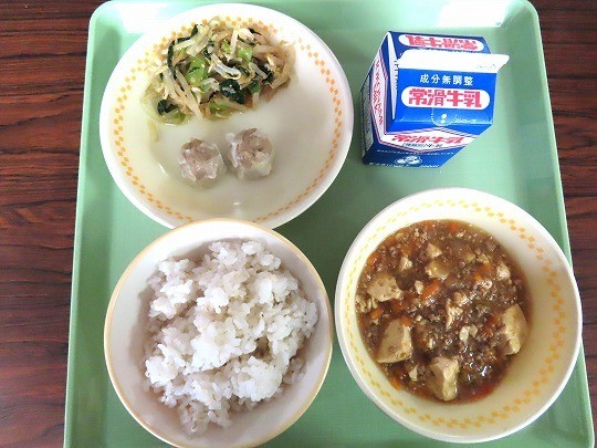 今日のメニューは、黒ロールパン、牛乳、鱈のハーブ焼き、ポークビーンズ、ごぼうサラダでした。