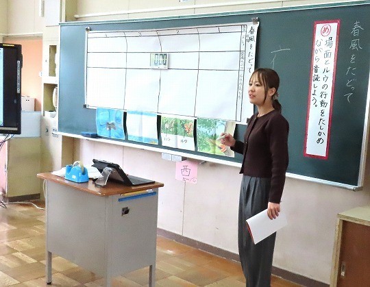 2年生の音楽は、「強さやはやさをかんじて 体をうごかそう」を学習していました。