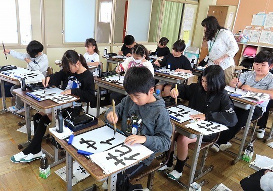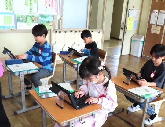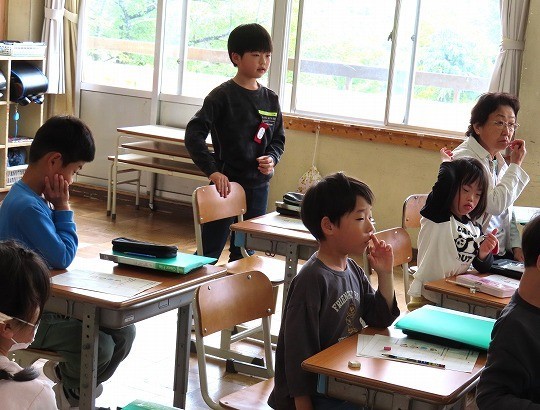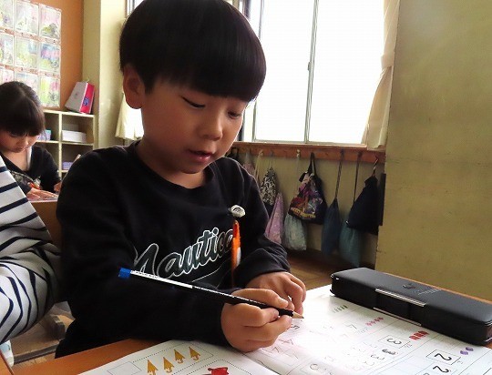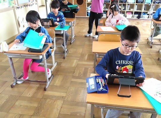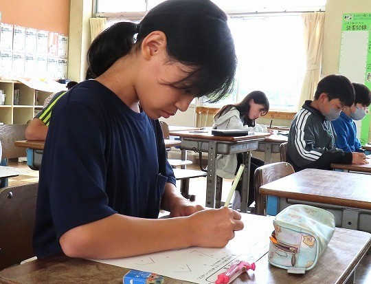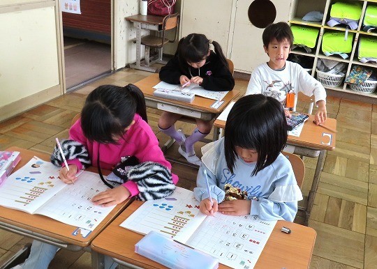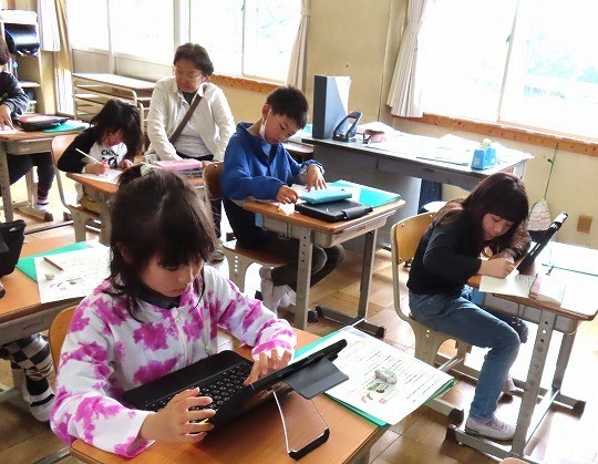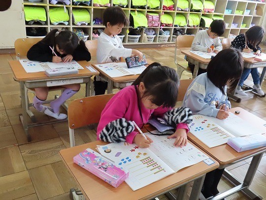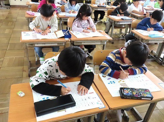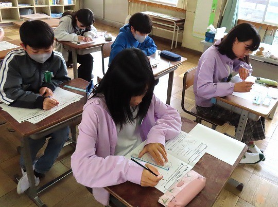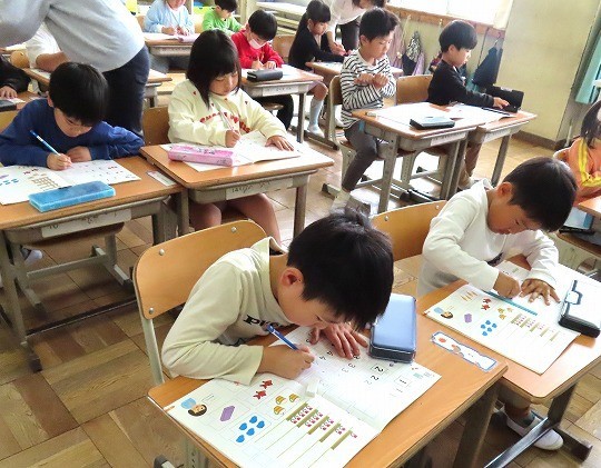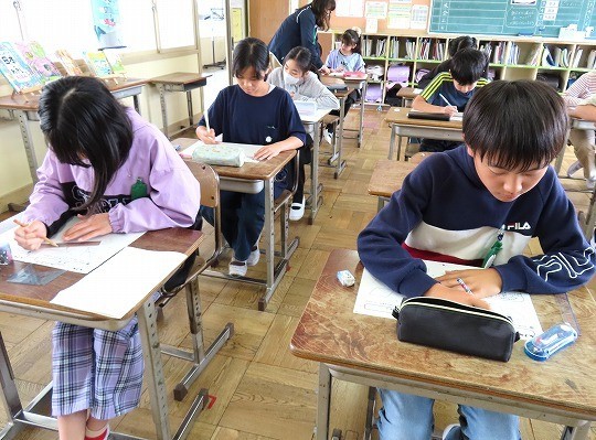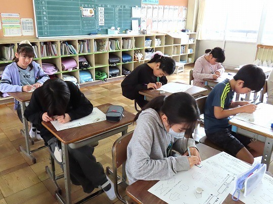 国語と算数のテストに皆、真剣に取り組んでいました。