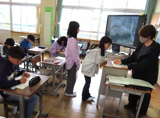 実際に校内を探検して,何があるのか、だれがいるのか観察していました。