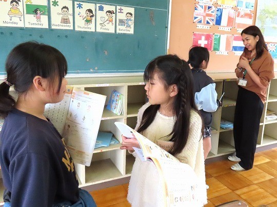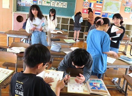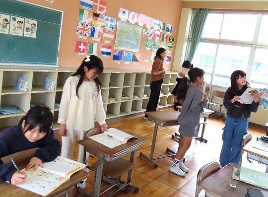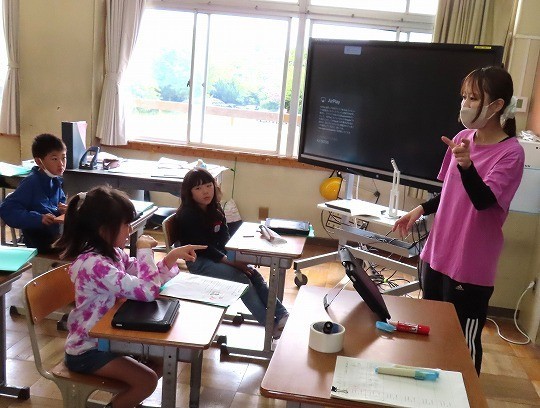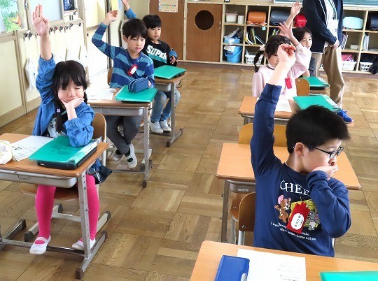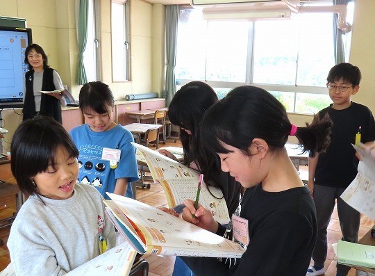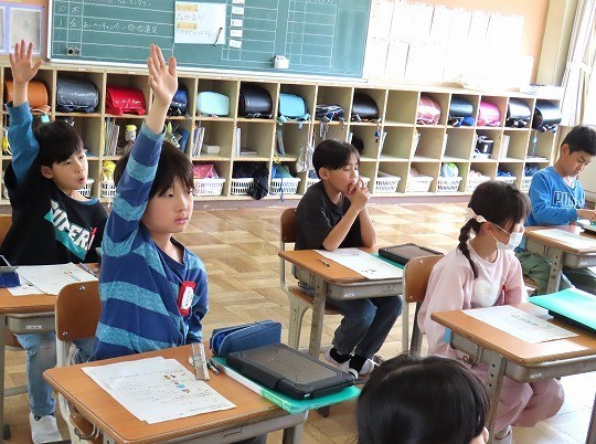 今日は、だれがどこで何をしているのか、ペアで話し合いながら発表していました。