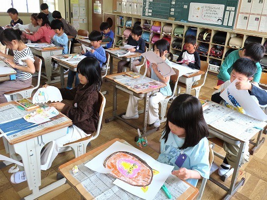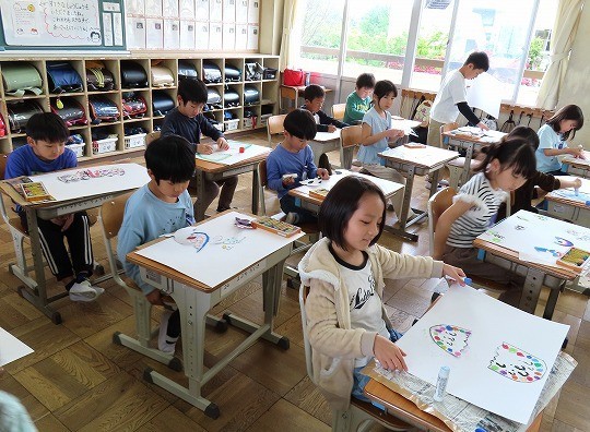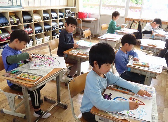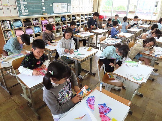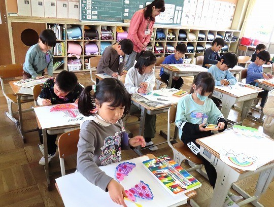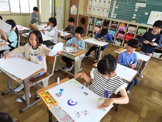 4年生の図工は、「絵の具でゆめもよう」の作品づくりをしていました。