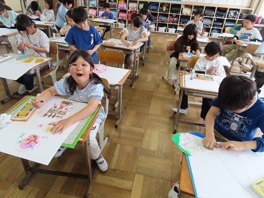 3年生の図工は、「絵の具+水=いいかんじ!」を学習していました。