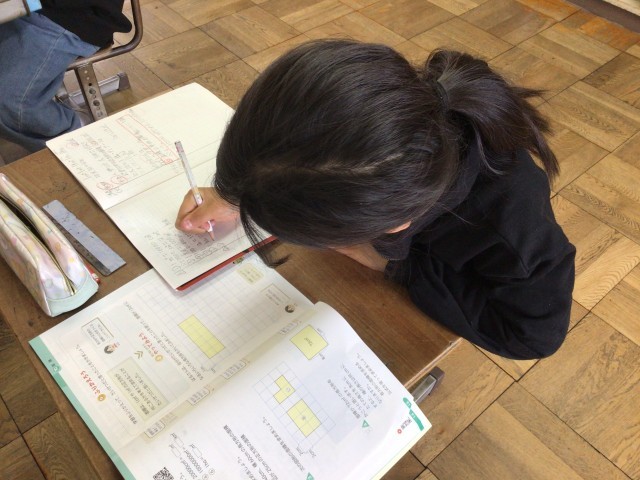 4年生 算数 公開日 2025/11/05 更新日 2025/11/05 旭東+(プラス) 4年生は算数の復習をしています。面積や単位変換など、これまで学んできたことを一つ一つ整理しながら取り組んでいます。