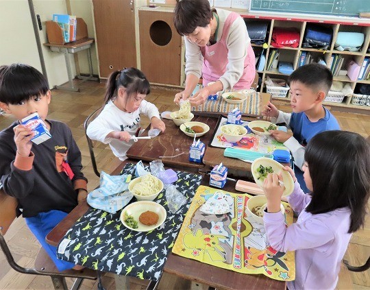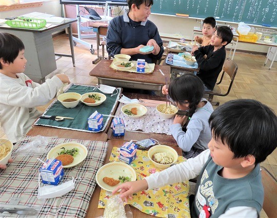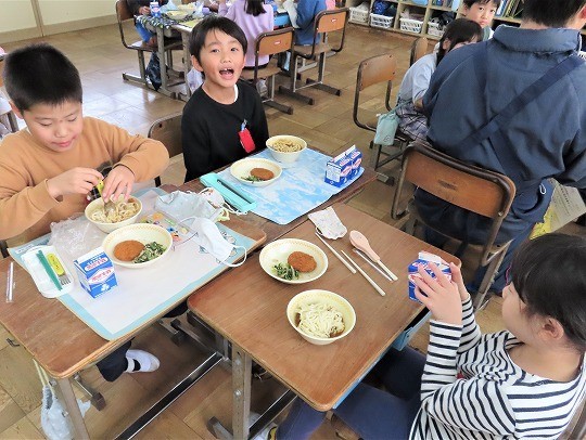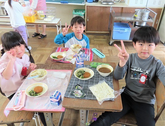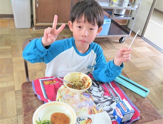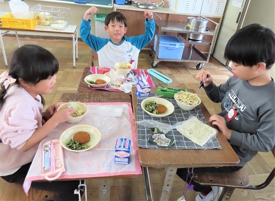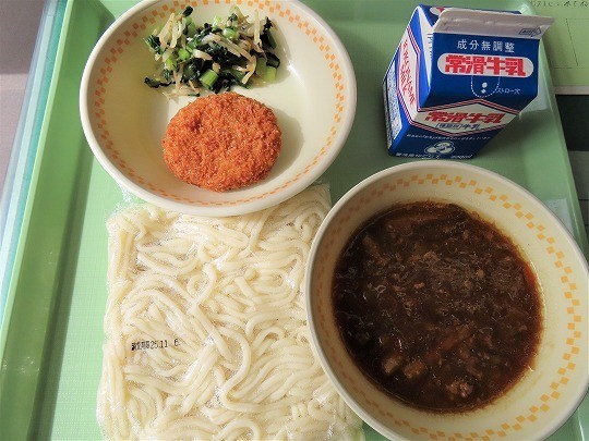 11/6(木) 今日の給食 公開日 2025/11/06 更新日 2025/11/06 旭東+(プラス) 今日のメニューは、ソフト麺、牛乳、肉みそかけ、キャベツ入りメンチカツ、野菜としらす干しの和え物でした。 +7