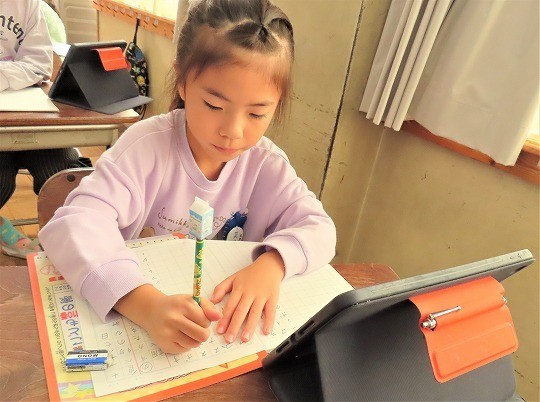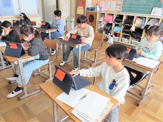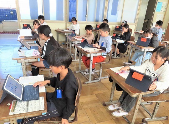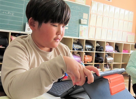 トウモロコシ、牛乳、米、いもなどを調べている児童が見られました。