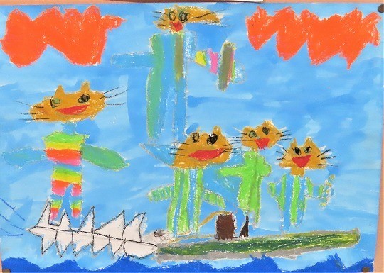 1年生の図工「おはなしだいすき」の作品展示です。