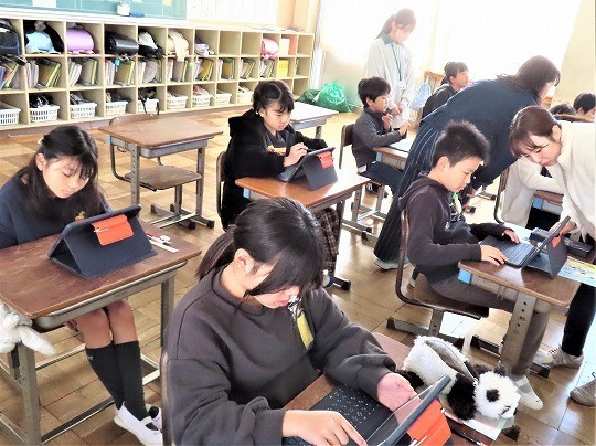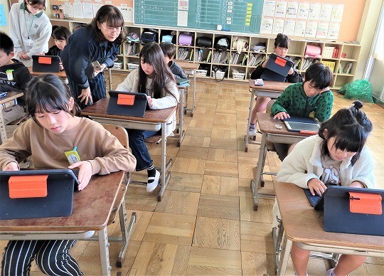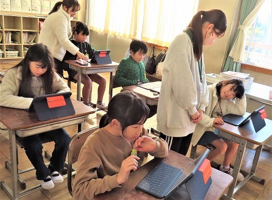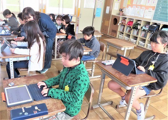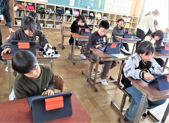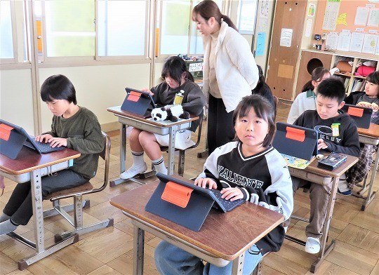 11/26(水) なぜかというと…… 公開日 2025/11/26 更新日 2025/11/26 旭東+(プラス) 4年生の算数は、「小数のかけ算とわり算」を学習しています。0.2×4の答えがどうして0.8となるのかを、今まで習った知識を使って考え、各自が説明文を作っていました。タブレットを使って、各自の説明を共有していました。 +6