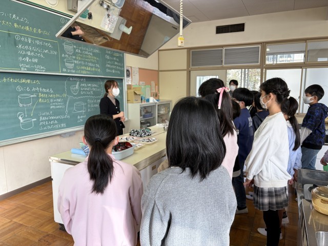 5年生は1・2時間目に「ご飯」と「味噌汁」を作る調理実習を行いました。自分たちがバケツで育てた稲から出来たお米を使っています。