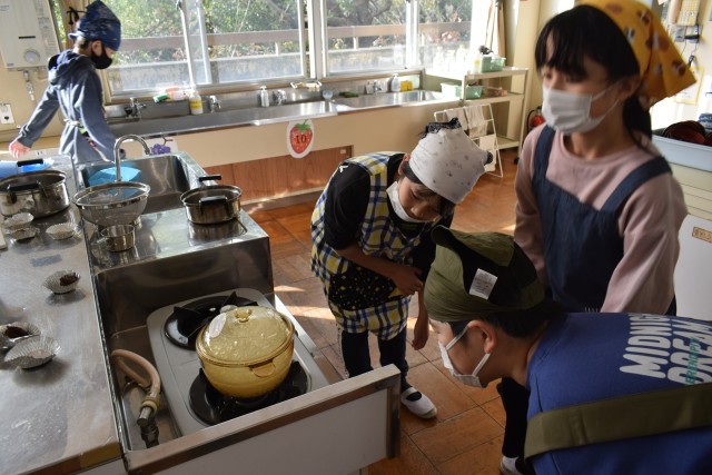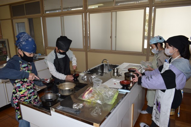 ご飯は全員で、味噌汁は個人で作りました。味噌汁はそれぞれが考えた具材を使って調理をしています。