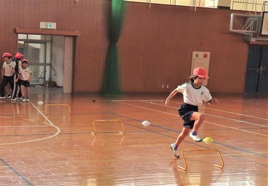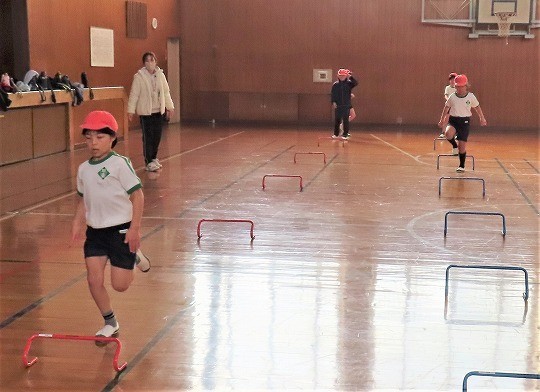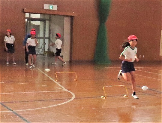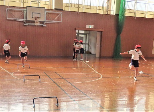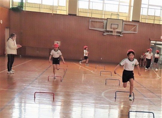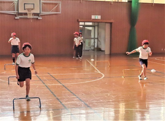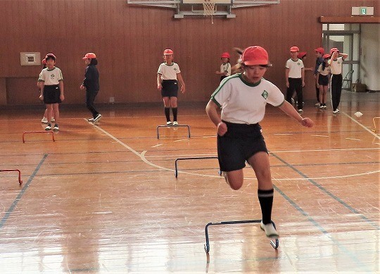 歩幅を合わせ、同じリズムでハードルを跳んでいけるよう、練習していました。