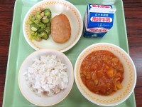 1/22(木) 今日の給食 公開日 2026/01/22 更新日 2026/01/22 旭東+(プラス) 今日のメニューは、ミルクロールパン、牛乳、大豆入りナゲット2個、冬野菜のクリームシチュー、ツナサラダでした。