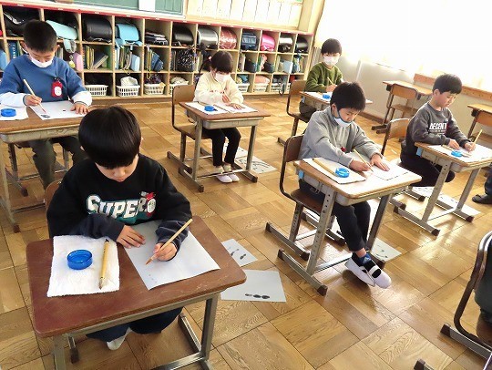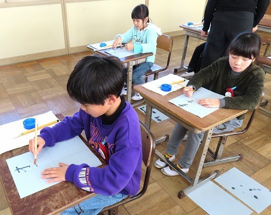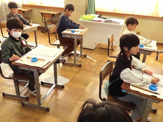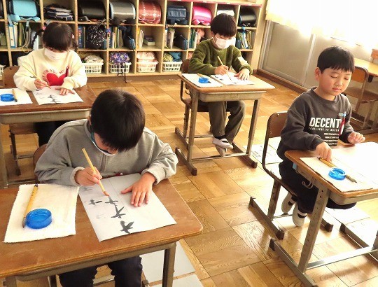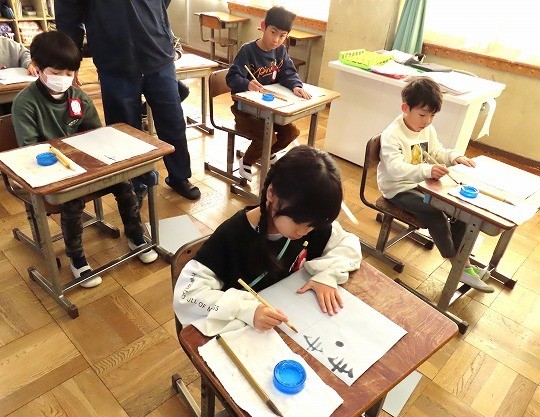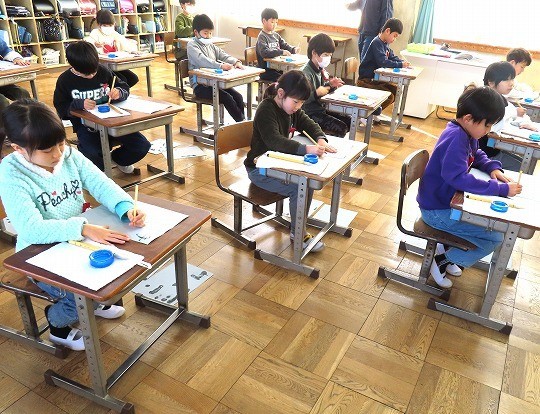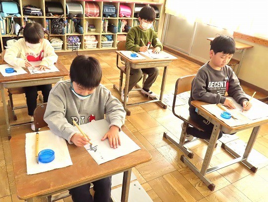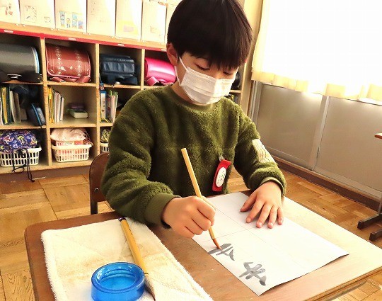 「手」「才」「会」を文字の形に注意しながら、丁寧に書く練習をしていました。