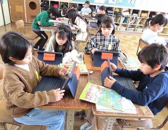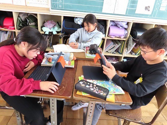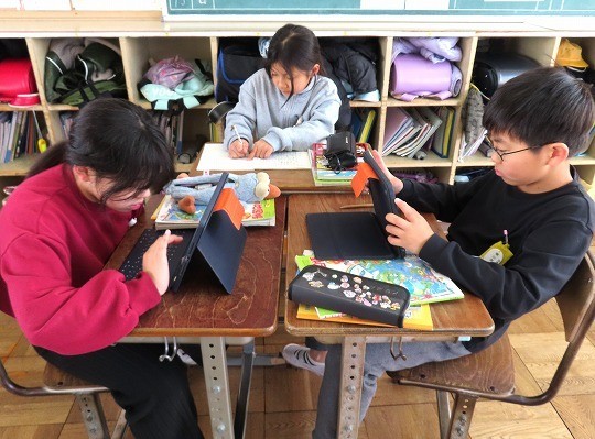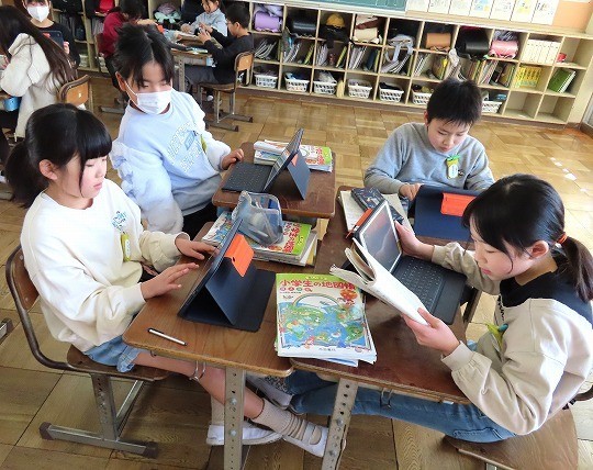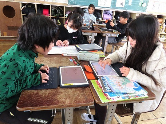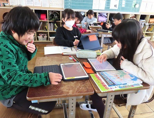 2/12(木) 発表準備 公開日 2026/02/12 更新日 2026/02/12 旭東+(プラス) 4年生の社会は、「愛知用水のれきし」を学習していました。今日は、グループで愛知用水について調べたことをまとめ、発表する準備をします。インターネットで調べたことを分かりやすい言葉に直し、相手に伝わるように準備をしていました。 +6