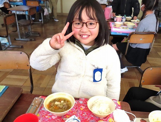 2/18(水) 今日の給食 公開日 2026/02/18 更新日 2026/02/18 旭東+(プラス) 今日のメニューは、ご飯、牛乳、焼き餃子2個、切り干し大根の中華サラダ、ハッポウタン、ヨーグルトでした。