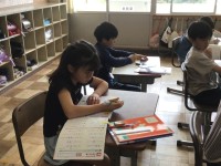 1年生は昔の遊びを体験しています。