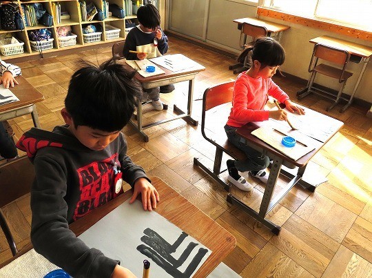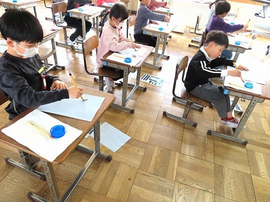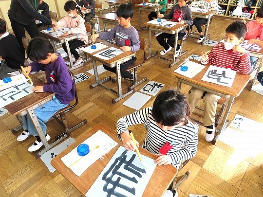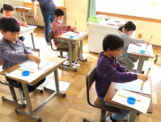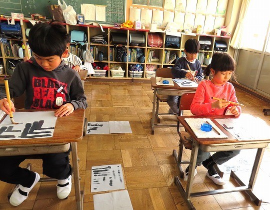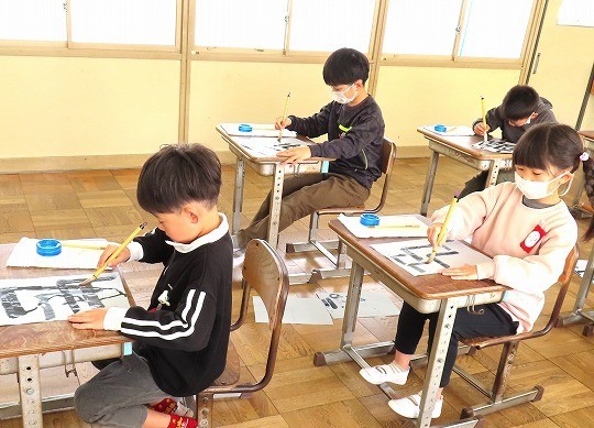 2/24(火) 水習字 公開日 2026/02/24 更新日 2026/02/24 旭東+(プラス) 2年生の書写は、水習字をしていました。今まで学習した横画、縦画、折れなどの練習をしていました。 +6