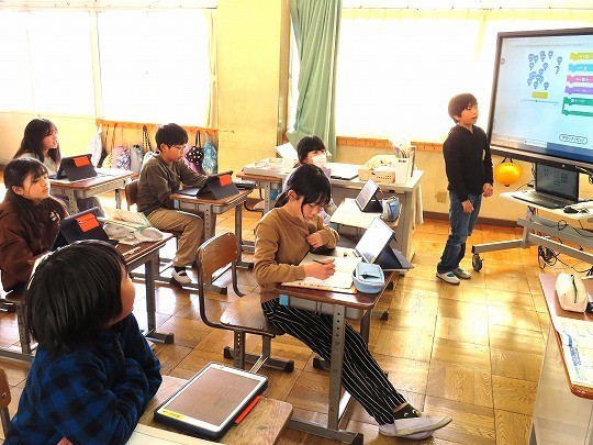 3/5(木) 分身の術プログラム 公開日 2026/03/06 更新日 2026/03/06 旭東+(プラス) 4年生の算数は、「わくわくプログラミング」を学習していました。「青忍者は、1回目の呪文で10人になり、2回目からは2人ずつ増えます。赤忍者は、1回目の呪文で3人になり、2回目からは2倍になります。」人数を求めるプログラミングを作り、10回唱えたときの青忍者と赤忍者のどちらが多くなるか考えていました。 +7