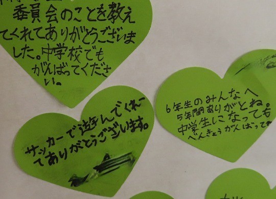 在校生から6年生へのメッセージ。
