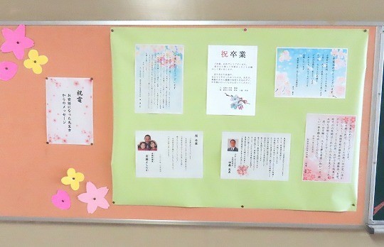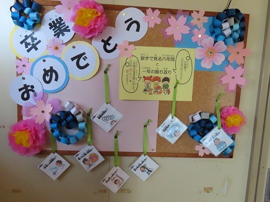 6年生が巣立った校舎には、あちらこちらに卒業の名残。