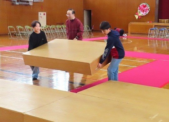 新5・6年生のがんばりで、教室と体育館等の準備が整いました。