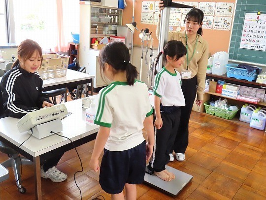 身長と体重を測って、自分の体が成長していることを確認しています。