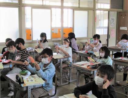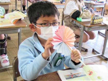 扇を使って、これから角の大きさについて学習します。明日の授業も楽しみです。