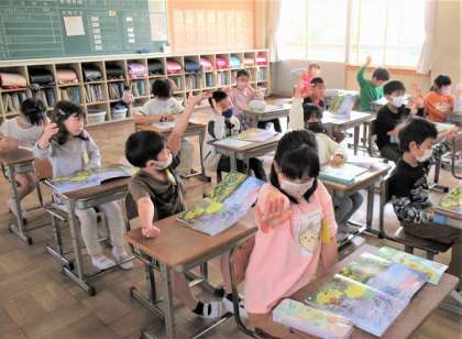 4/14(金) 初めての理科 2 公開日 2023/04/14 更新日 2023/04/14 旭東+(プラス) 教科書の「しぜんを見よう」の写真を見ながら、気づいたことや分かったことを発表していました。