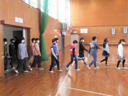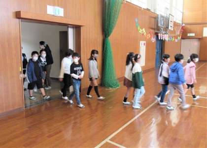 4/17(月) 移動訓練 公開日 2023/04/17 更新日 2023/04/17 旭東+(プラス) 朝会を始める時間を利用して、風水害避難のための体育館移動訓練を行いました。大雨で帰宅が困難な場合には、体育館に移動してお迎えを待ちます。
