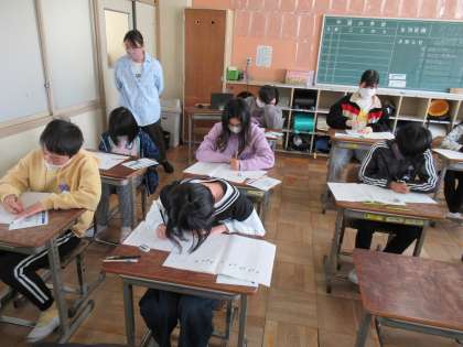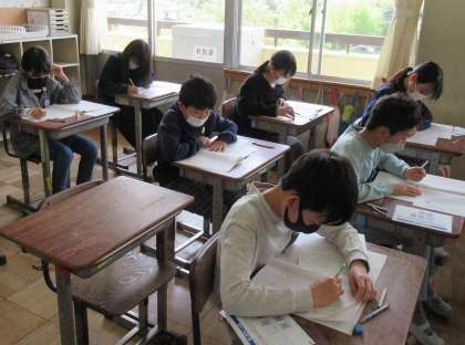 皆、国語と算数の問題に集中して取り組んでいます。
