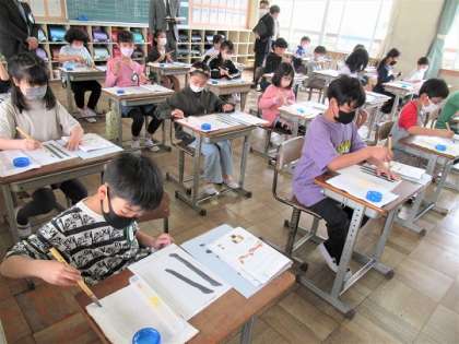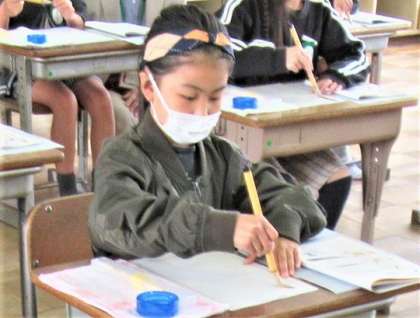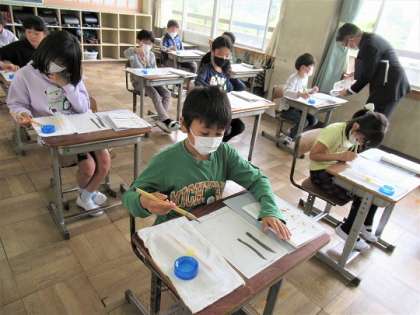 書くときの姿勢、筆の持ち方、筆遣いを考えて取り組んでいました