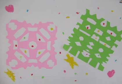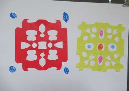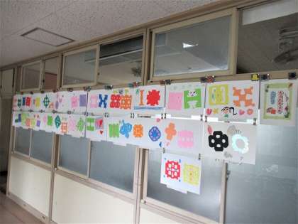 1年生の図工作品「チョキチョキかざり」の作品展示です。