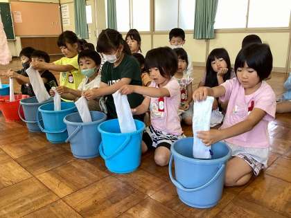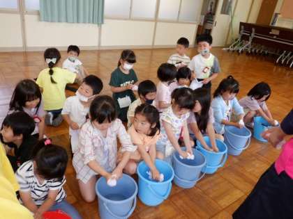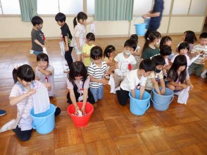 雑巾のしぼり方も教わりました。