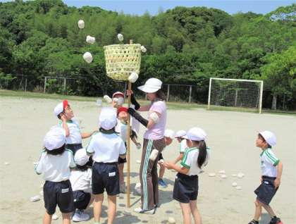 はじめは、かごまでの距離感がなかなかつかめない様子。