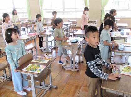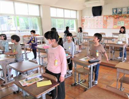 3年生の音楽では、「気球に乗ってどこまでも」を学習していました。
