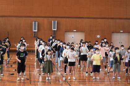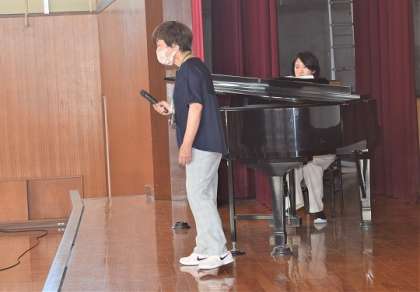 名古屋フィルハーモニー交響楽団に来校していただく鑑賞会に向けて、全校での練習を行いました。