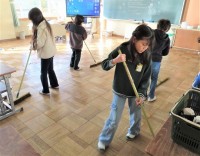 スポーツ委員会の児童をお手本にラジオ体操です。