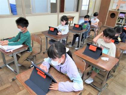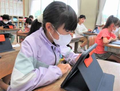 タブレットで算数の復習問題に取り組んでいました。