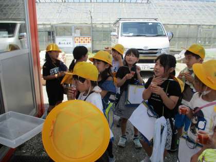 6/16(金) 2年生校外学習トマト屋さん3 公開日 2023/06/16 更新日 2023/06/16 旭東+(プラス) 最後に、トマトジュースを試飲させていただきました。トマトジュースのおいしさにびっくりしていました。
