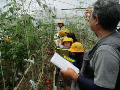 6/16(金) 2年生校外学習トマト屋さん2 公開日 2023/06/16 更新日 2023/06/16 旭東+(プラス) 事前に考えた質問をして、おいしいトマトを作るためのコツなどを学習していました。