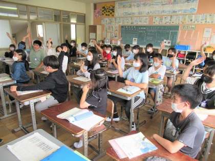 6年生の道徳では、資料「食事中のメール」を読んで考えていました。