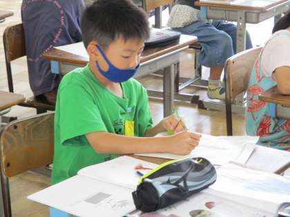 自分で育てたホウセンカを1本、教室に持ち帰って観察していました。