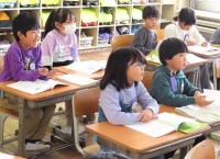 新しい教科書をもらっていました。2年生で使う教科書は、来週に回収して学校で保管します。