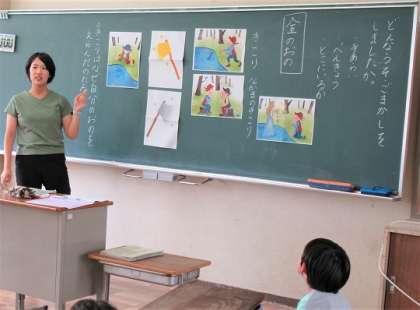 2年生の道徳では、「金のおの」のお話を聞いて考えていました。