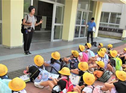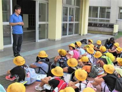 1年生と2年生が校外学習に出かけました。出発式の様子です。