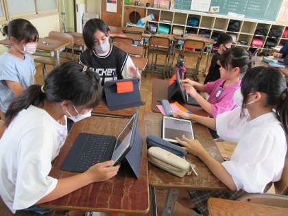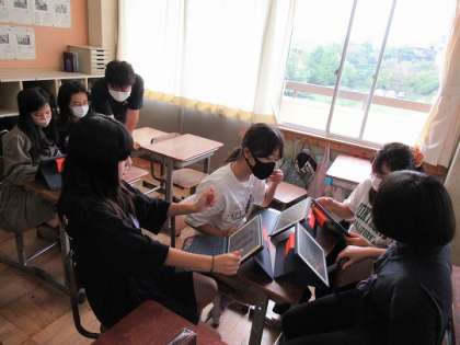 日本と世界の文化について発表できるように、グループで話し合いをしていました。