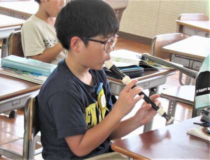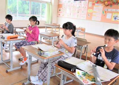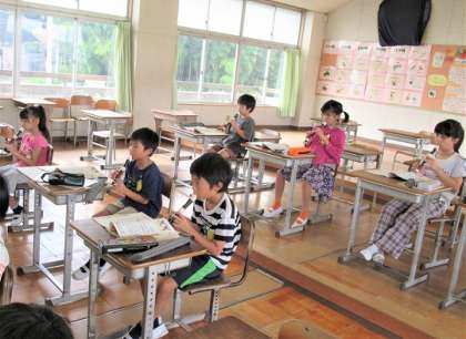 リコーダーの指づかいを繰り返し練習しています。高い「ド」と「レ」もできるようになりました。