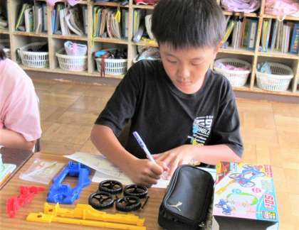 9/15(金) ウインドカー 2 公開日 2023/09/15 更新日 2023/09/15 旭東+(プラス) 今日は、ウインドカーの実験キットをもらって、使い方の説明を受けていました。みんな同じきっとなので、記名もしっかりしています。