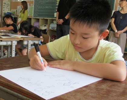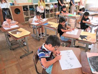 2年生の図工では、「ガリバー旅行記」を描いていました。